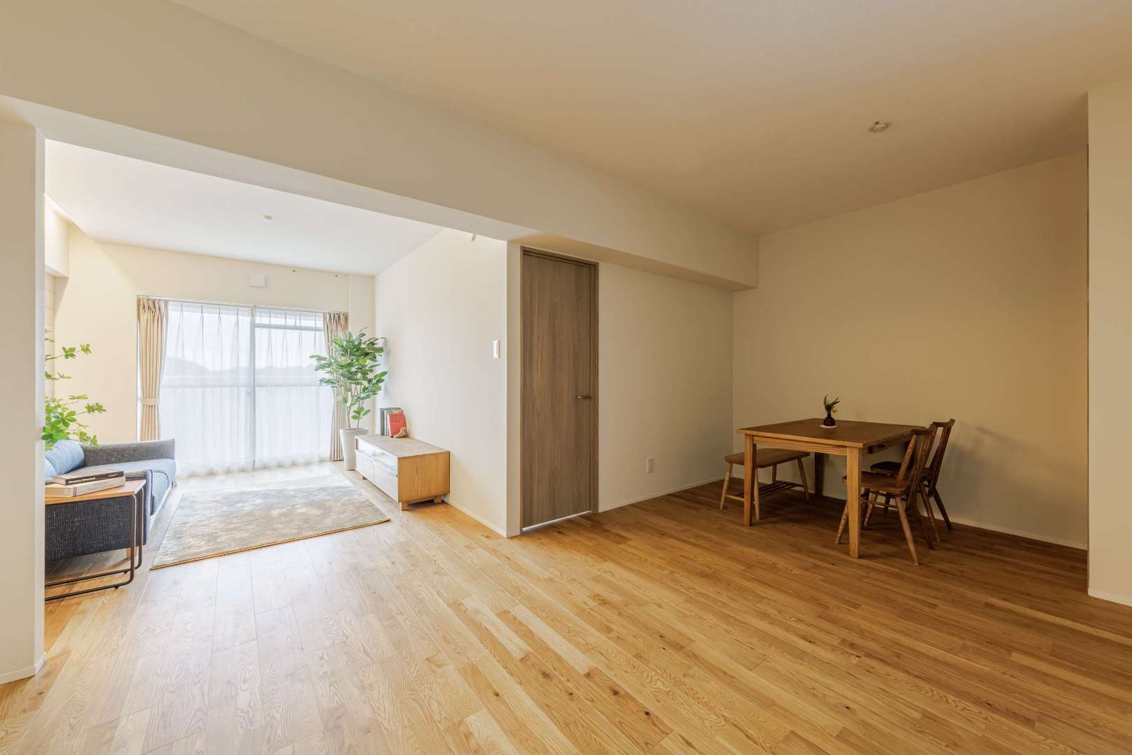 間取り変更:既存の壁を取り払い、リビングとダイニングを一体化させました。料理をしながら家族とのコミュニケーションが取りやすい設計に。