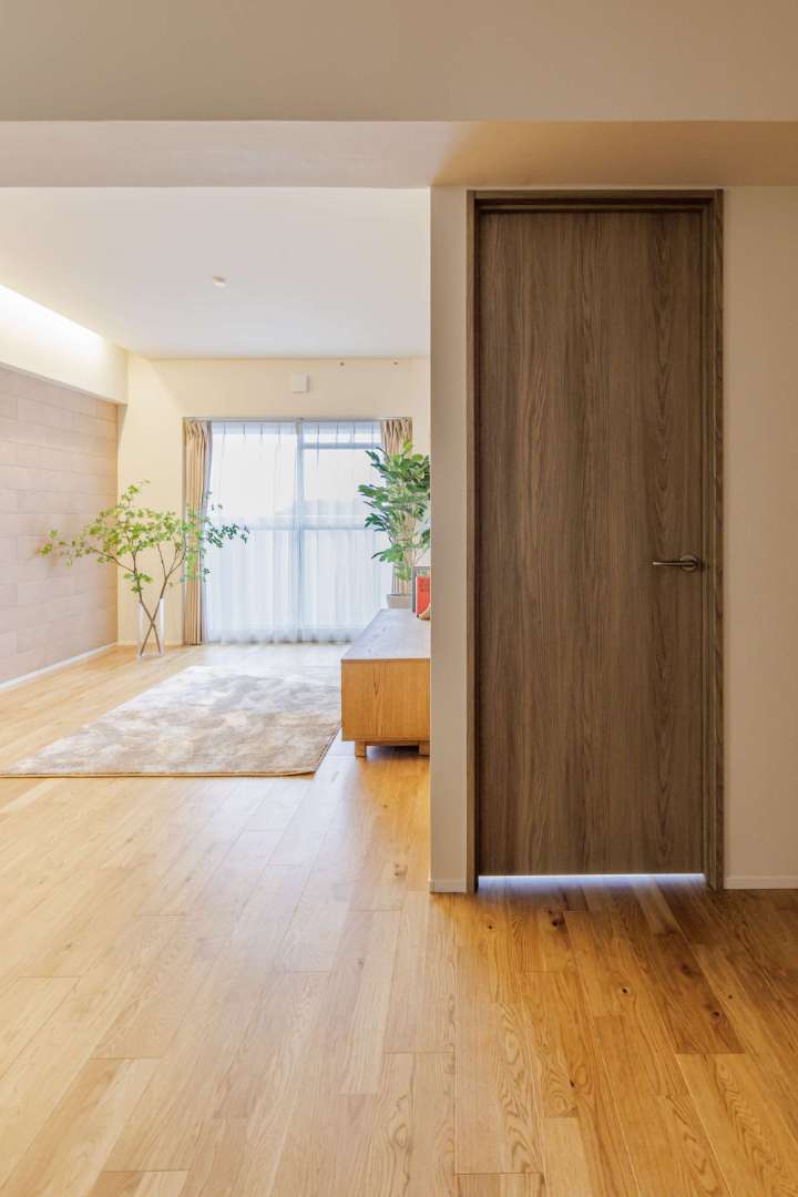 デザインコンセプト:モダンでありながら温かみのあるナチュラルテイストを採用。オーク材のフローリングと落ち着いた色合いの壁紙で、上質な空間を演出しました。