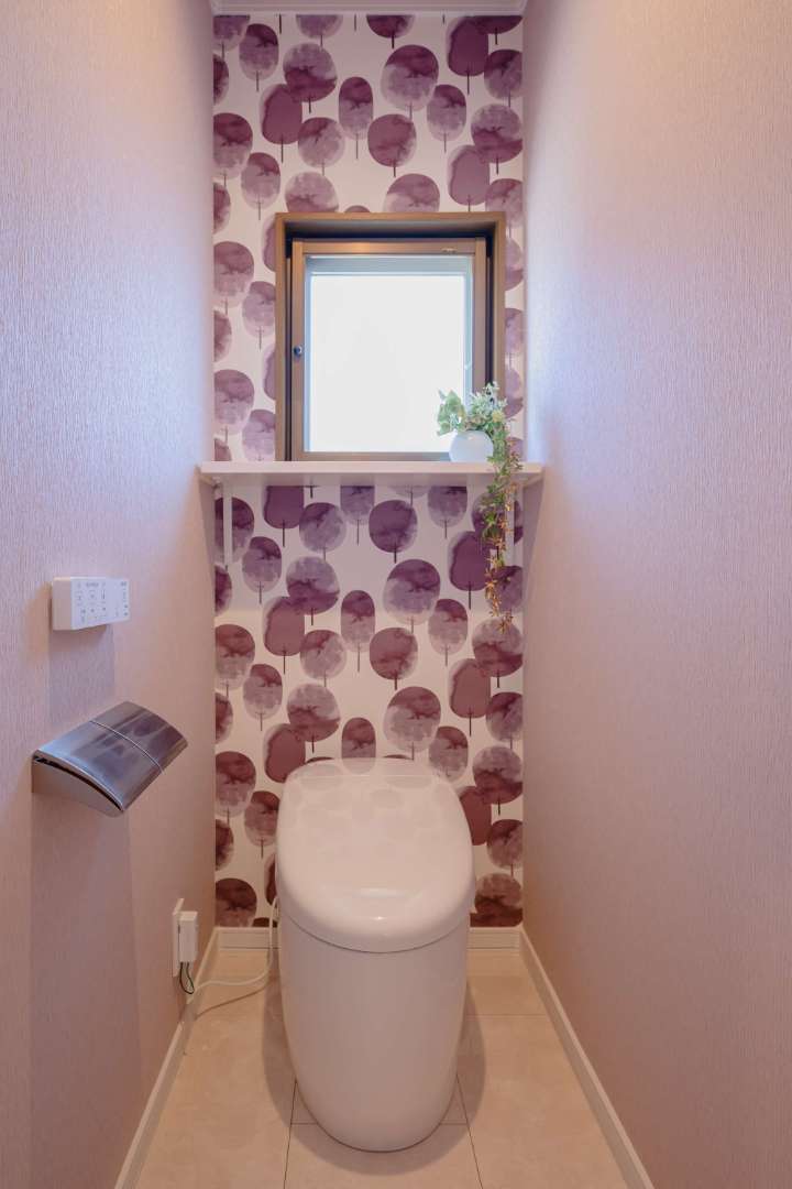 施工後のトイレになります。色合いがきれいなクロスを選びました。